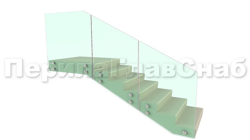Ограждение для лестницы на несущем стекле с точечным креплением в торец для крыльца