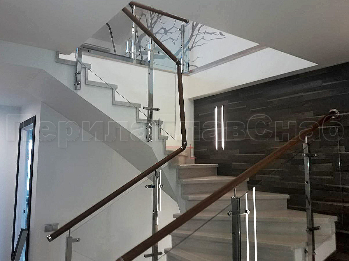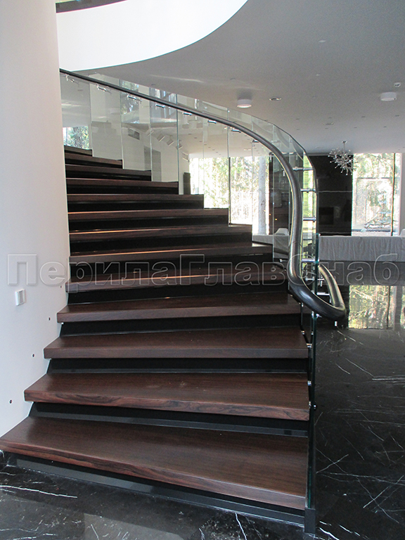 Стеклянные перила для лестниц с забежными ступенями отличаются: