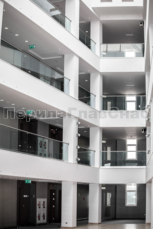 Наиболее удачные решения готовых стеклянных перил в бизнес- и торговых центрах.