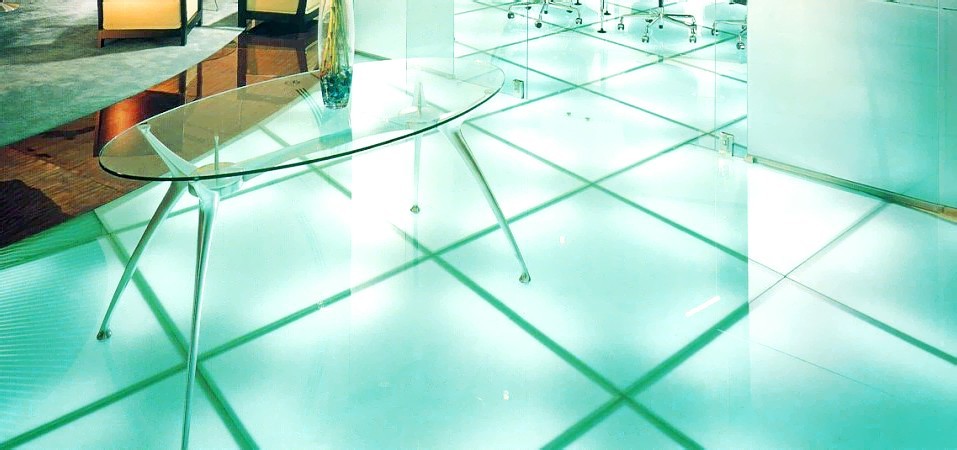 Особенности стеклянных полов с люминесцентной подсветкой или подсветкой из ламп