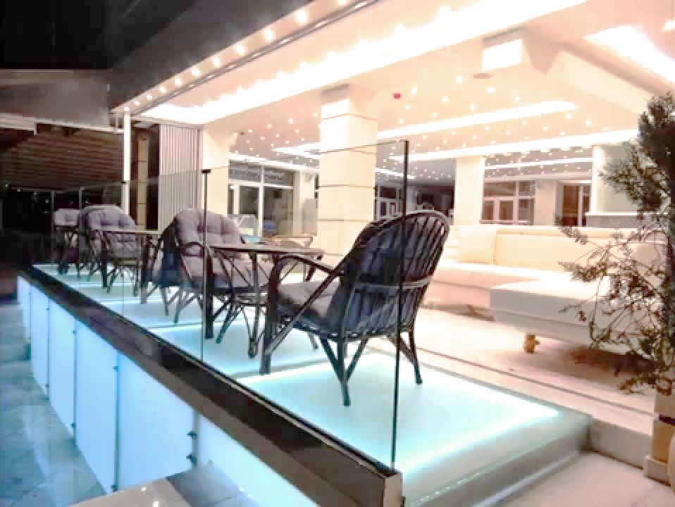 Примеры цельностеклянных ограждений для атриумов забежных: