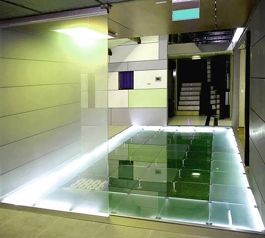 Стеклянный пол для легкого перекрытия между этажами