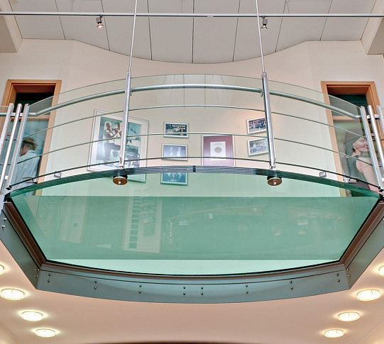 Стеклянное перекрытие из матового стекла на внутреннем балконе