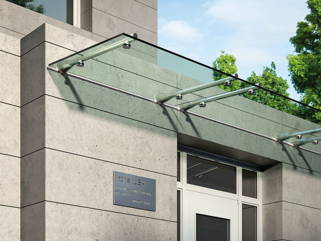 Консоли-козырьки универсальны. Благодаря разнообразию вариантов кронштейнов их можно органично вписать в любой дизайн-проект как частного дома, так и социально значимого объекта.