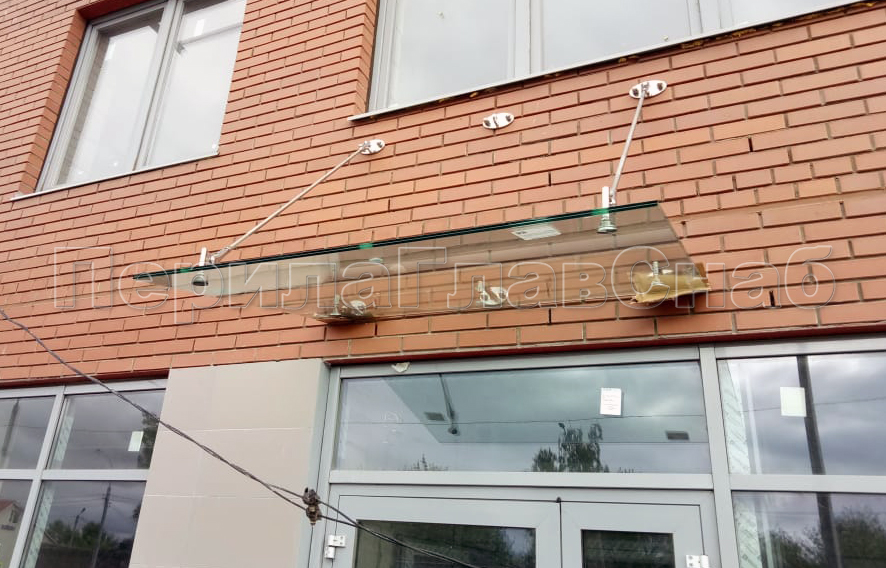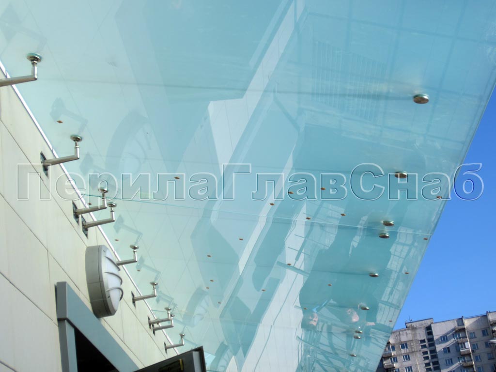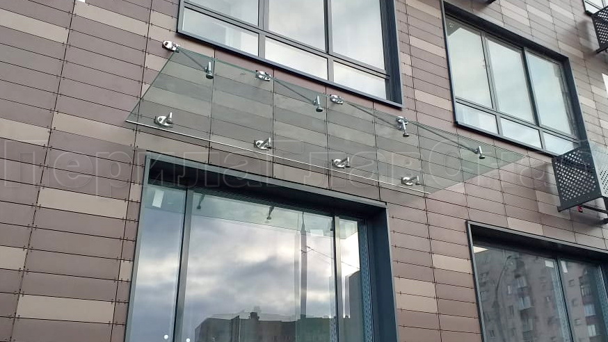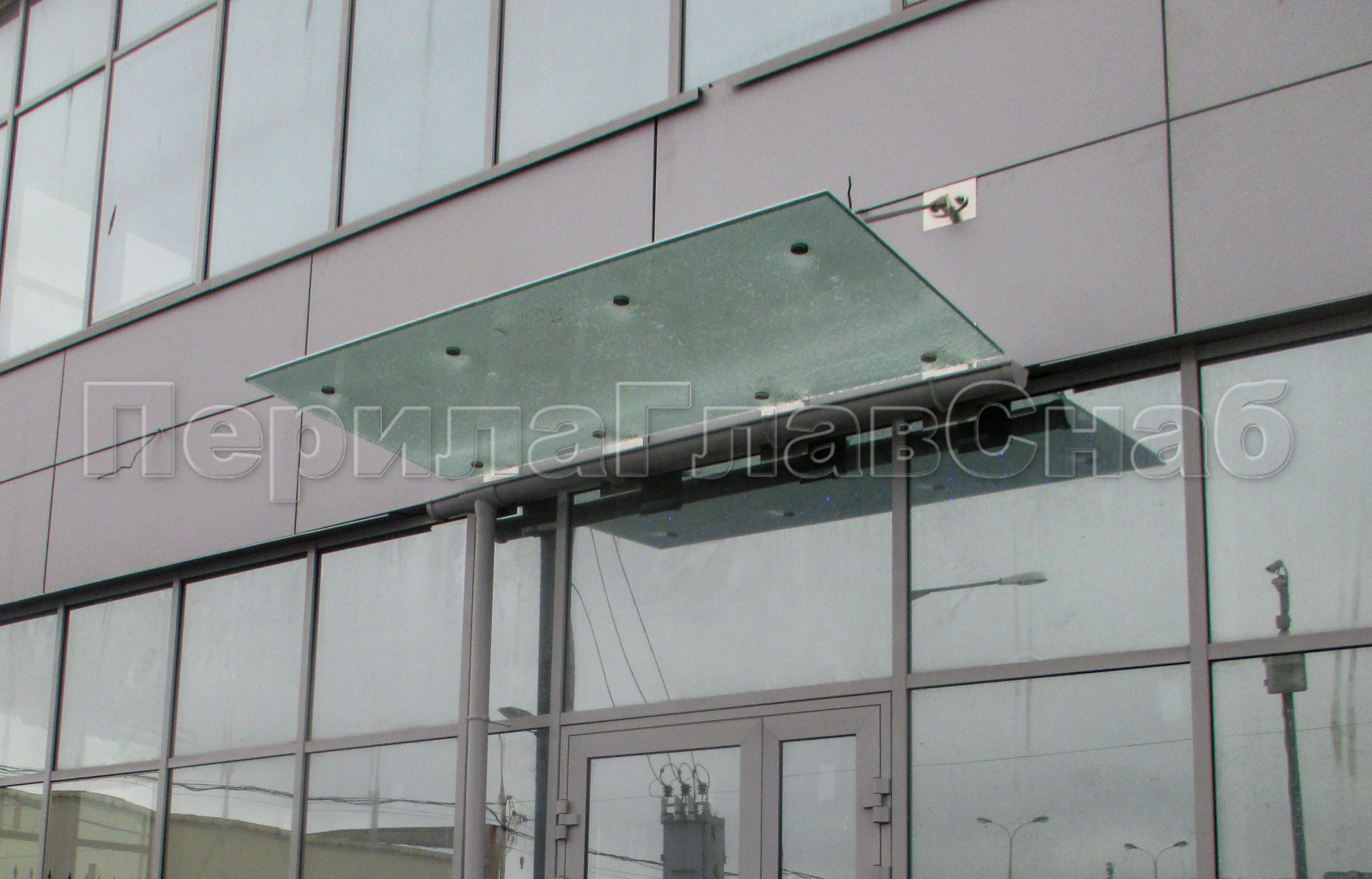 - 6. Практичность. Навесы из стекла оказывают невысокую нагрузку на фасады, благодаря чему их можно использовать на любых типах зданий. Продукция защищает от УФ-лучей, и в то же время не препятствует проникновению дневного света, что позволяет размещать ее над окнами и рекламными стендами.