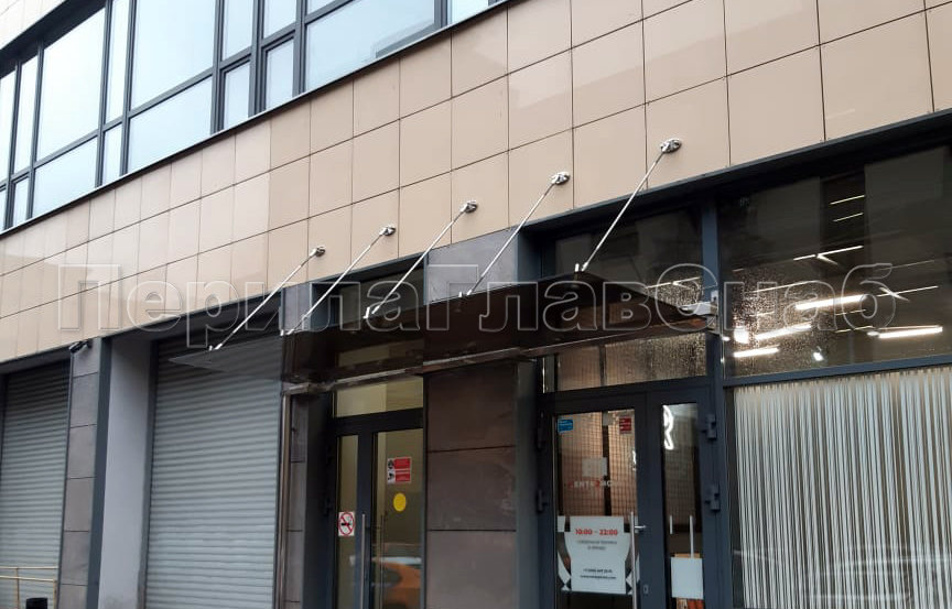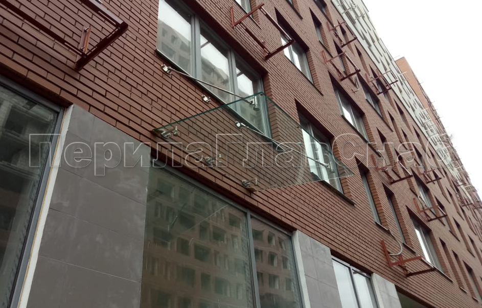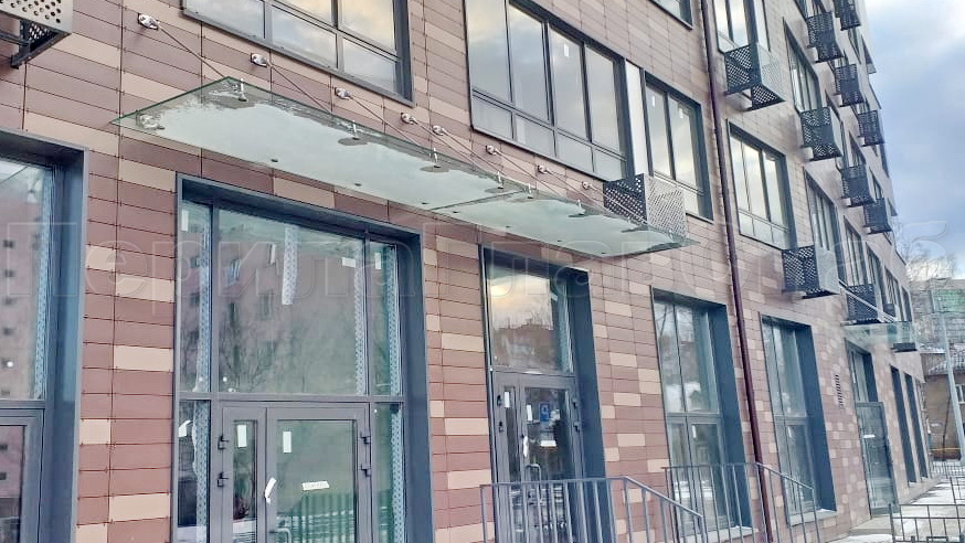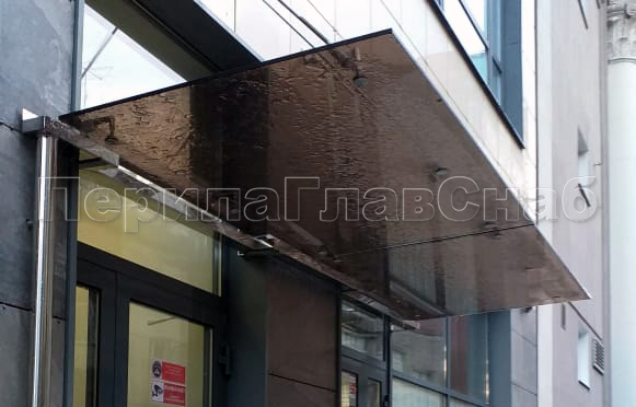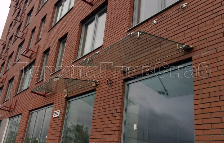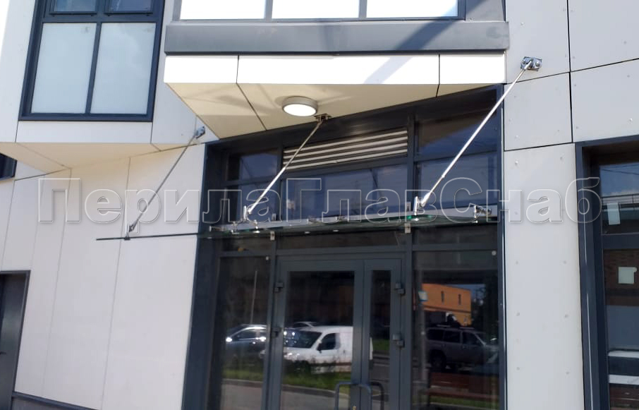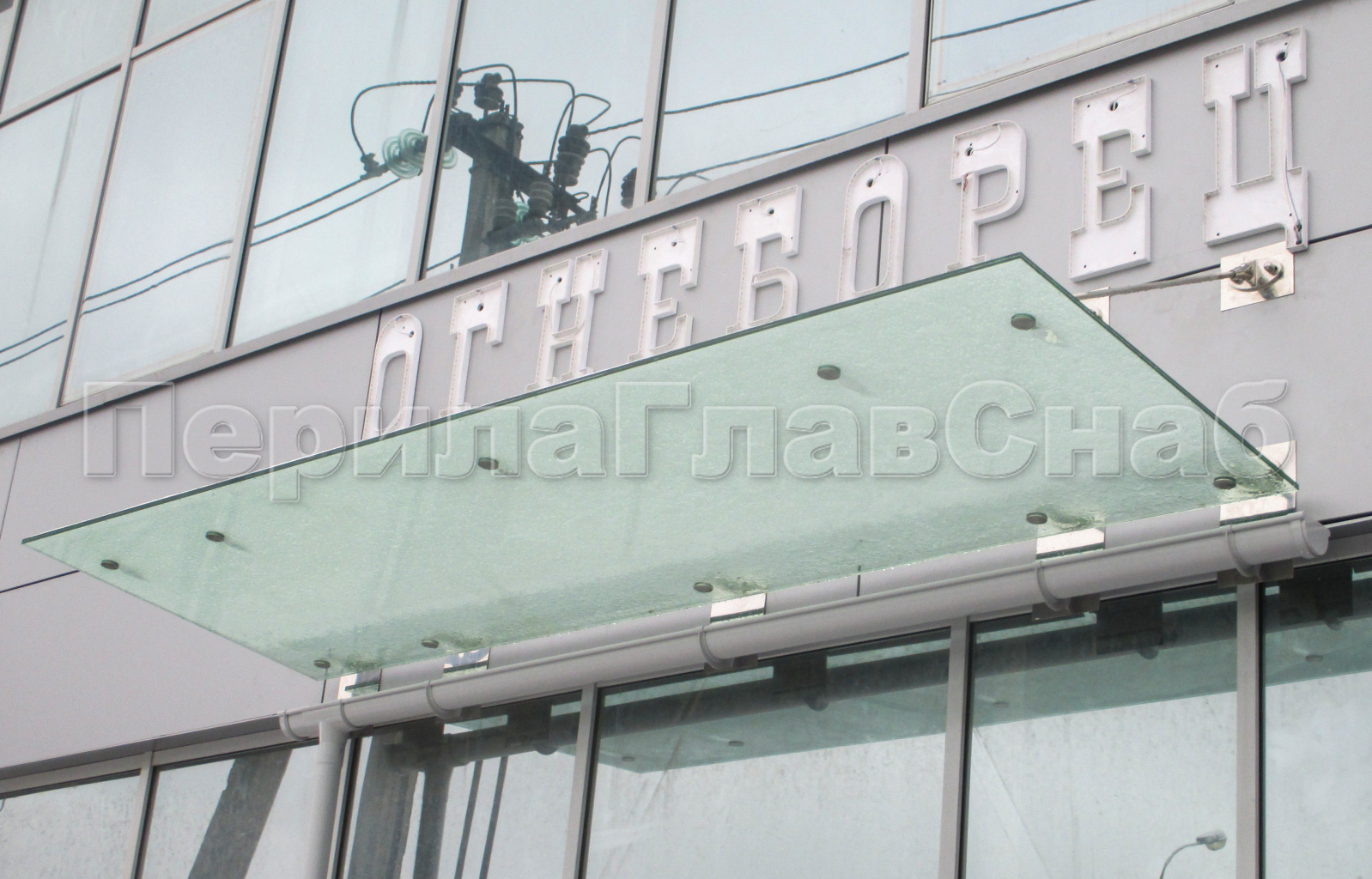 - 6. Практичность. Навесы из стекла оказывают невысокую нагрузку на фасады, благодаря чему их можно использовать на любых типах зданий. Продукция защищает от УФ-лучей, и в то же время не препятствует проникновению дневного света, что позволяет размещать ее над окнами и рекламными стендами.