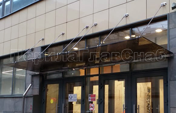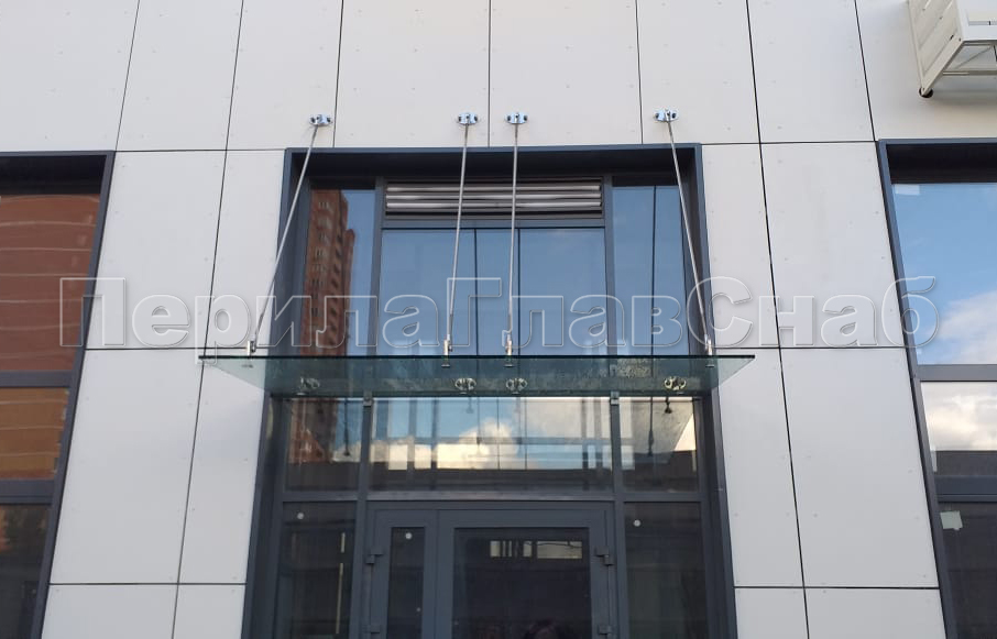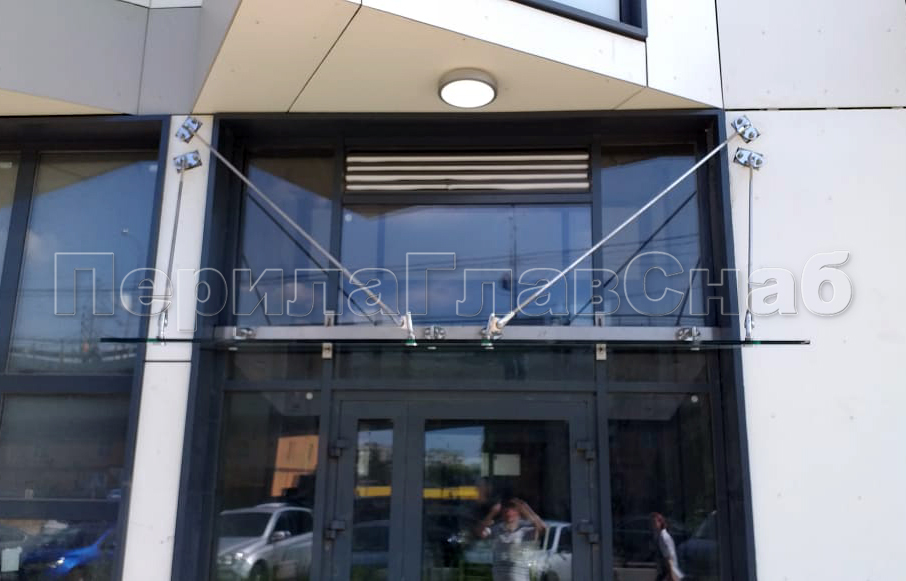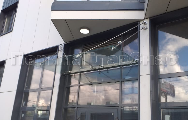 Козырек на вантах — эстетичное и функциональное решение для оформления любых типов зданий. Подобная конструкция выглядит привлекательнее и оригинальнее бетонных, металлических и поликарбонатных изделий. Несмотря на свою внешнюю хрупкость, подвесные стеклянные козырьки обеспечивают надежную защиту от любых осадков и ультрафиолета. В компании «ПерилаГлавСнаб» вы можете приобрести конструкцию на вантах по индивидуальному техническому заданию с фирменной гарантией.