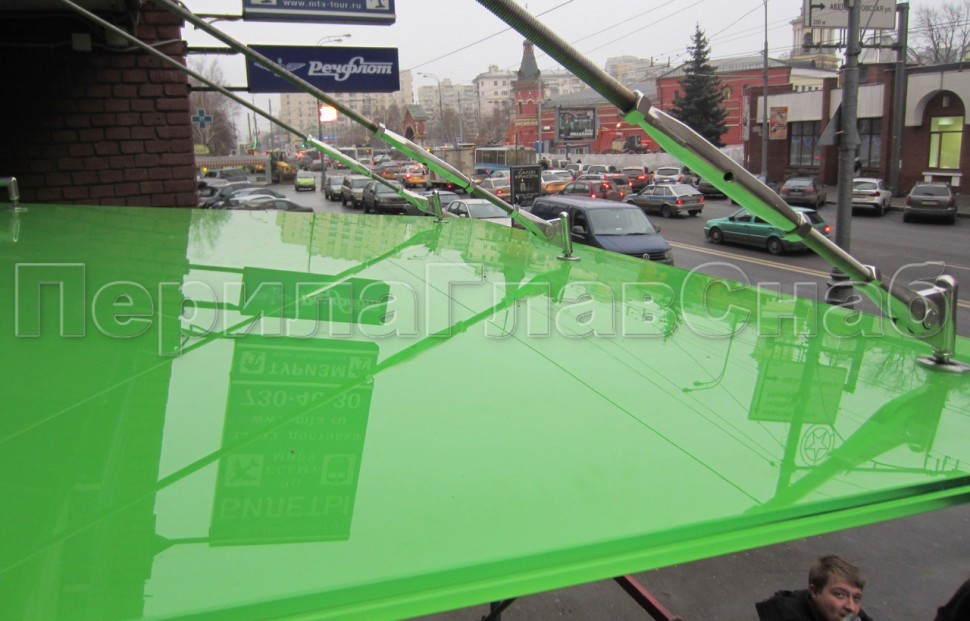 Записаться на встречу Стеклянный козырек на вантах