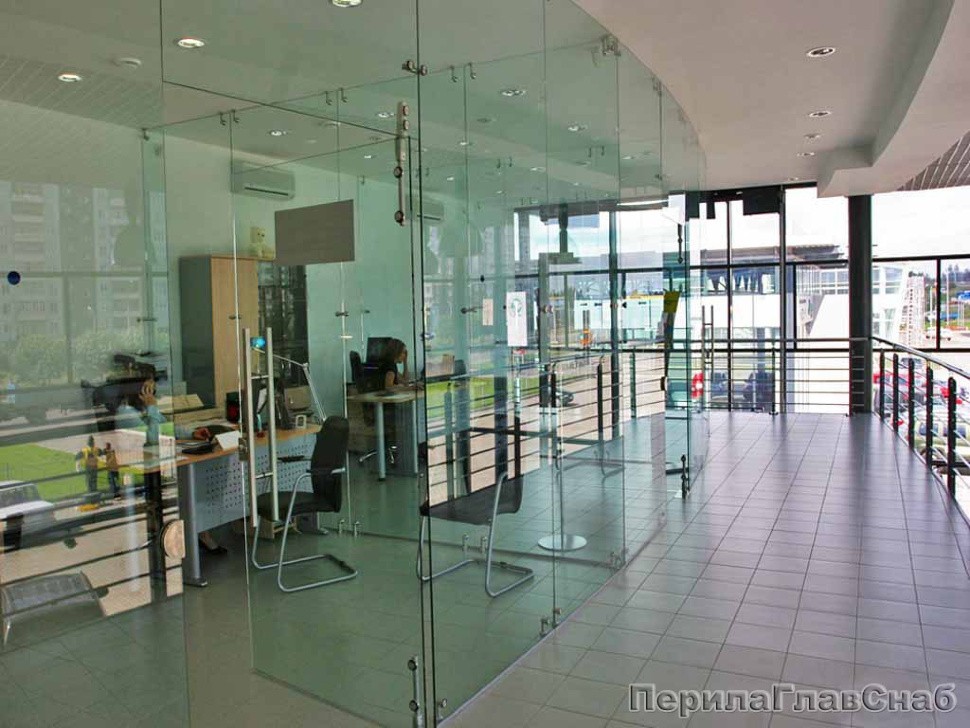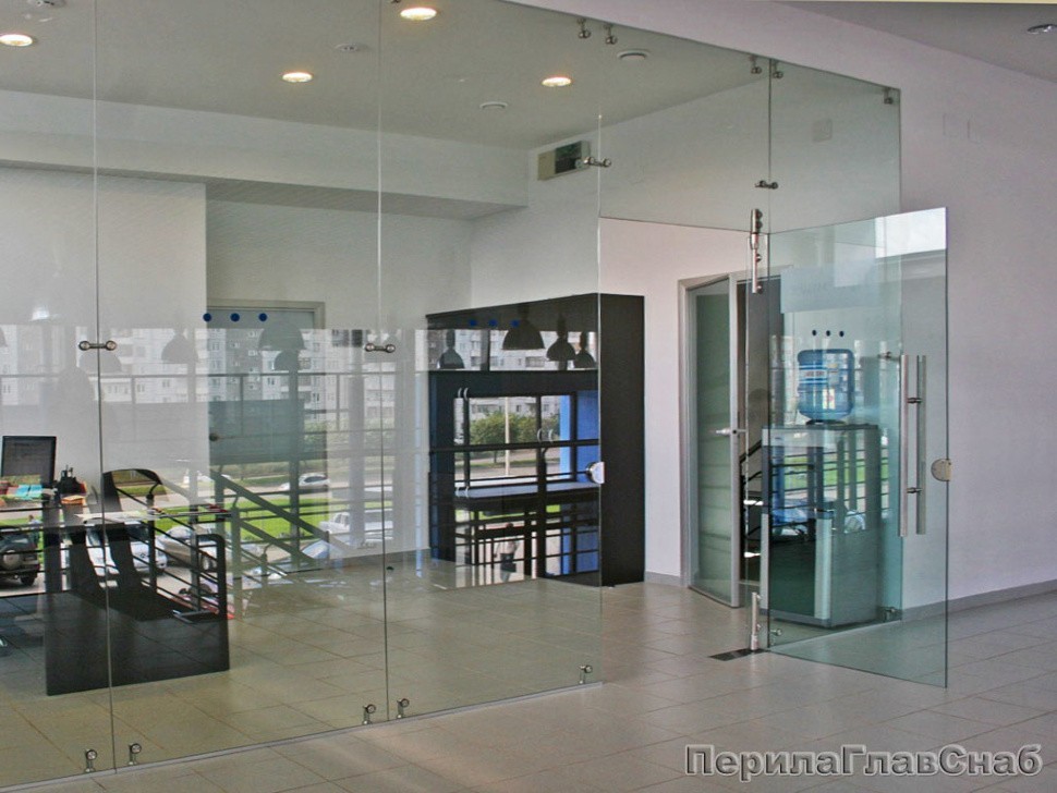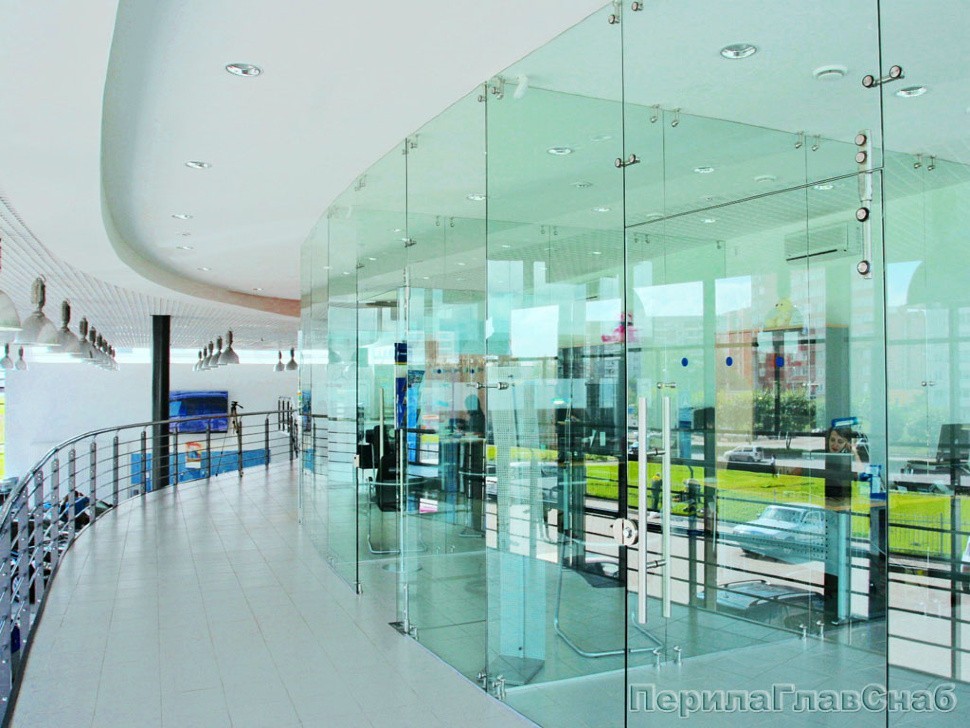 Бескаркасные стеклянные перегородки с точечным крепежом